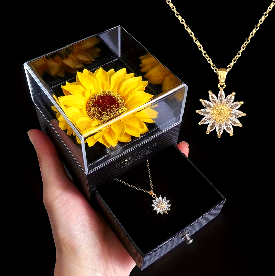 Elegante conjunto de regalo de collar de girasol, celebración de amor, lealtad